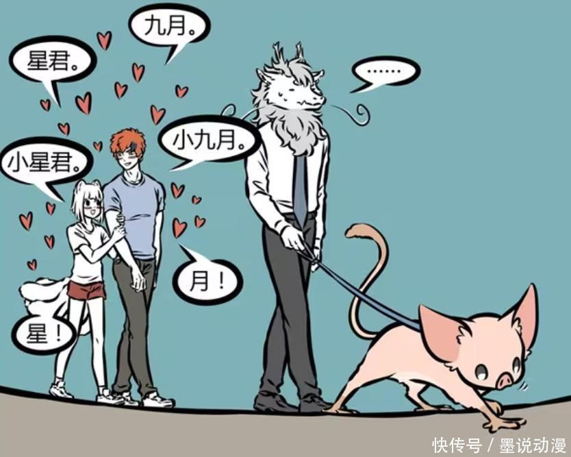 《非人哉》漫画版中,九月虽然号称单身200多年,但实际上她有过两段很短暂的恋爱,分别跟狼人和昴日星君。狼人是妲己介绍,原本两人相处的还不错,可是因为误以为大光相是月亮,所以导致狼人化,所以没有下文。至于昴日星君,完全是因为月老乱牵红线。
